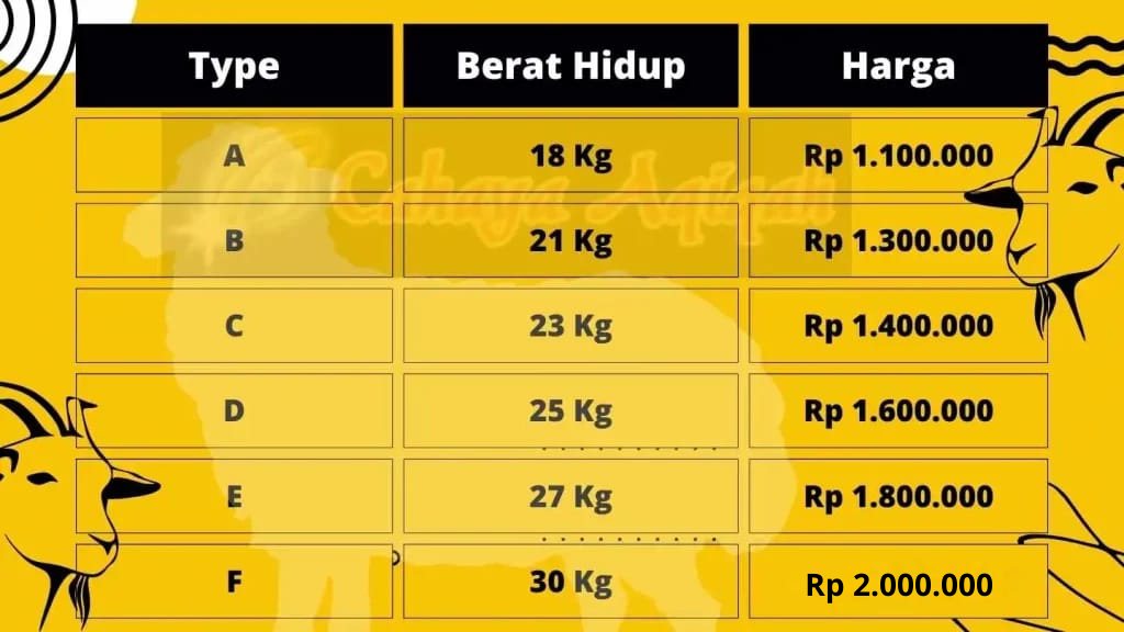 Harga di bawah ini untuk Ayah Bunda yang hanya ingin membeli kambing saja, kisaran harganya sebagai berikut :